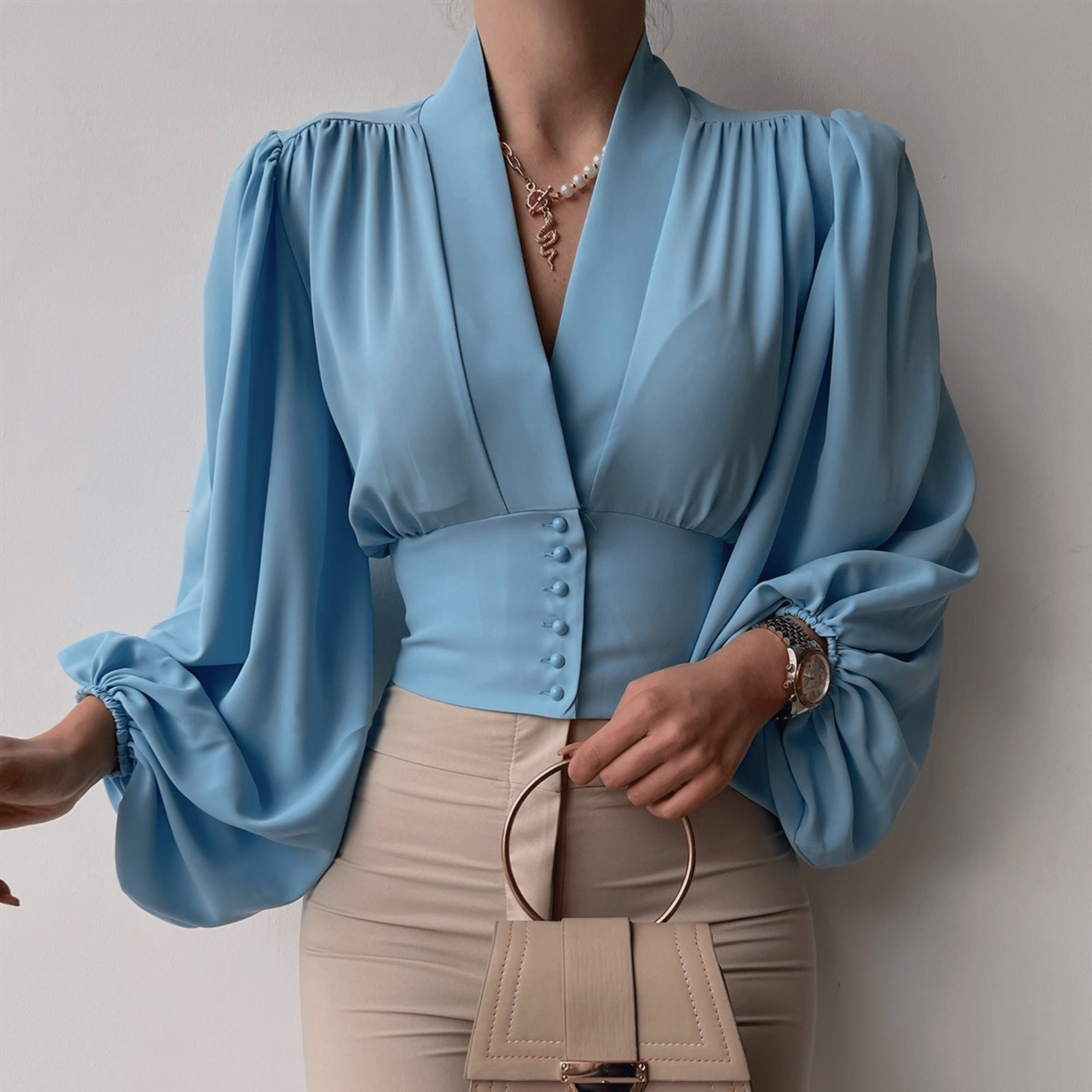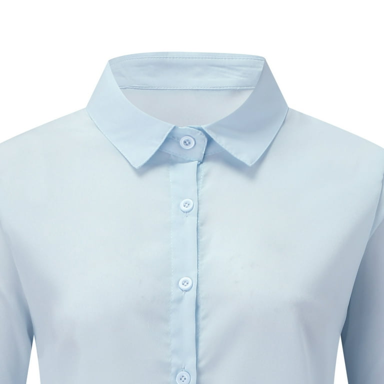 Mrulic T Shirts For Women Women S Long Sleeve Solid Color Button Turn Down Collar Shirts Blouses Tops Womens T Shirts Light Blue M Walmart Com